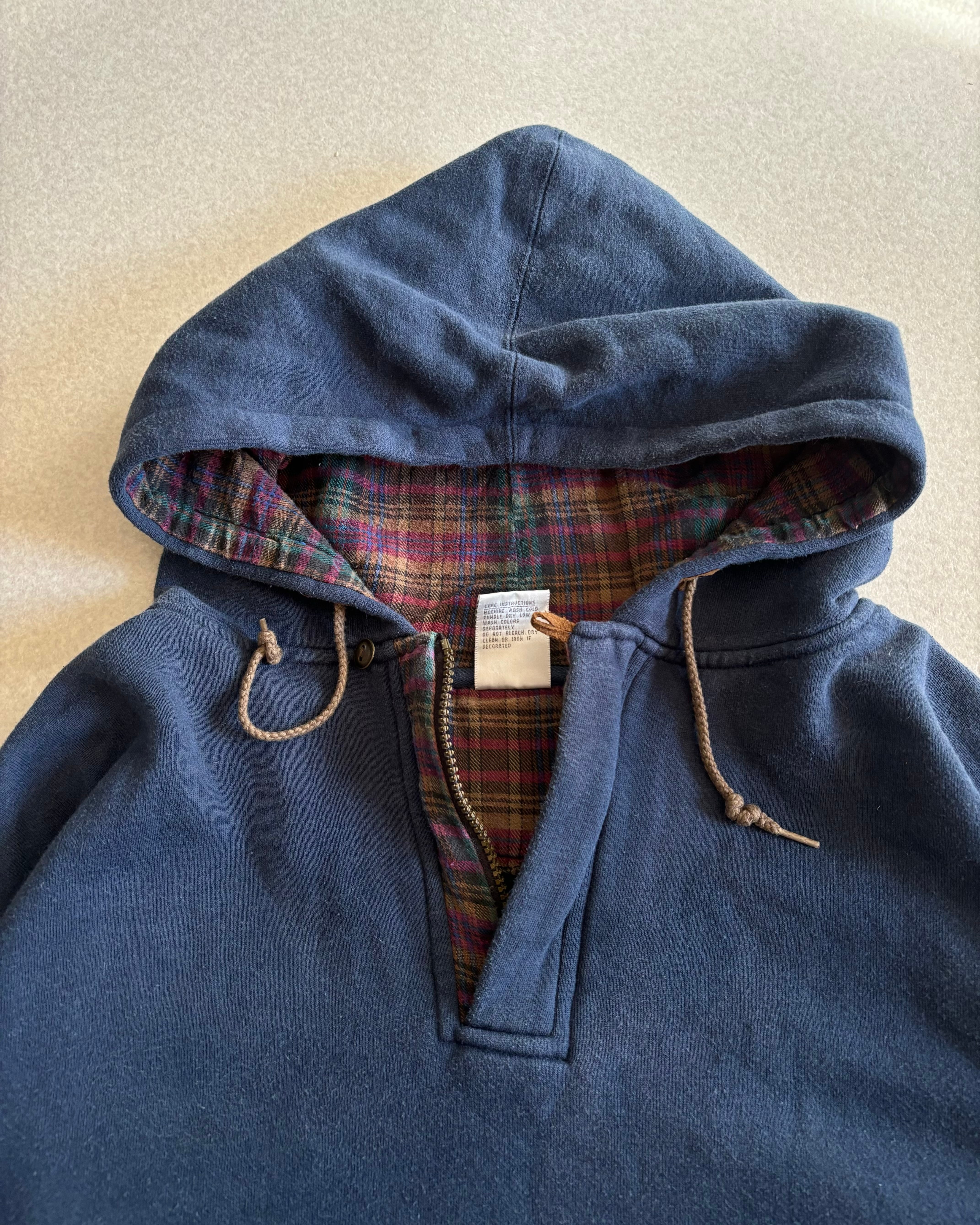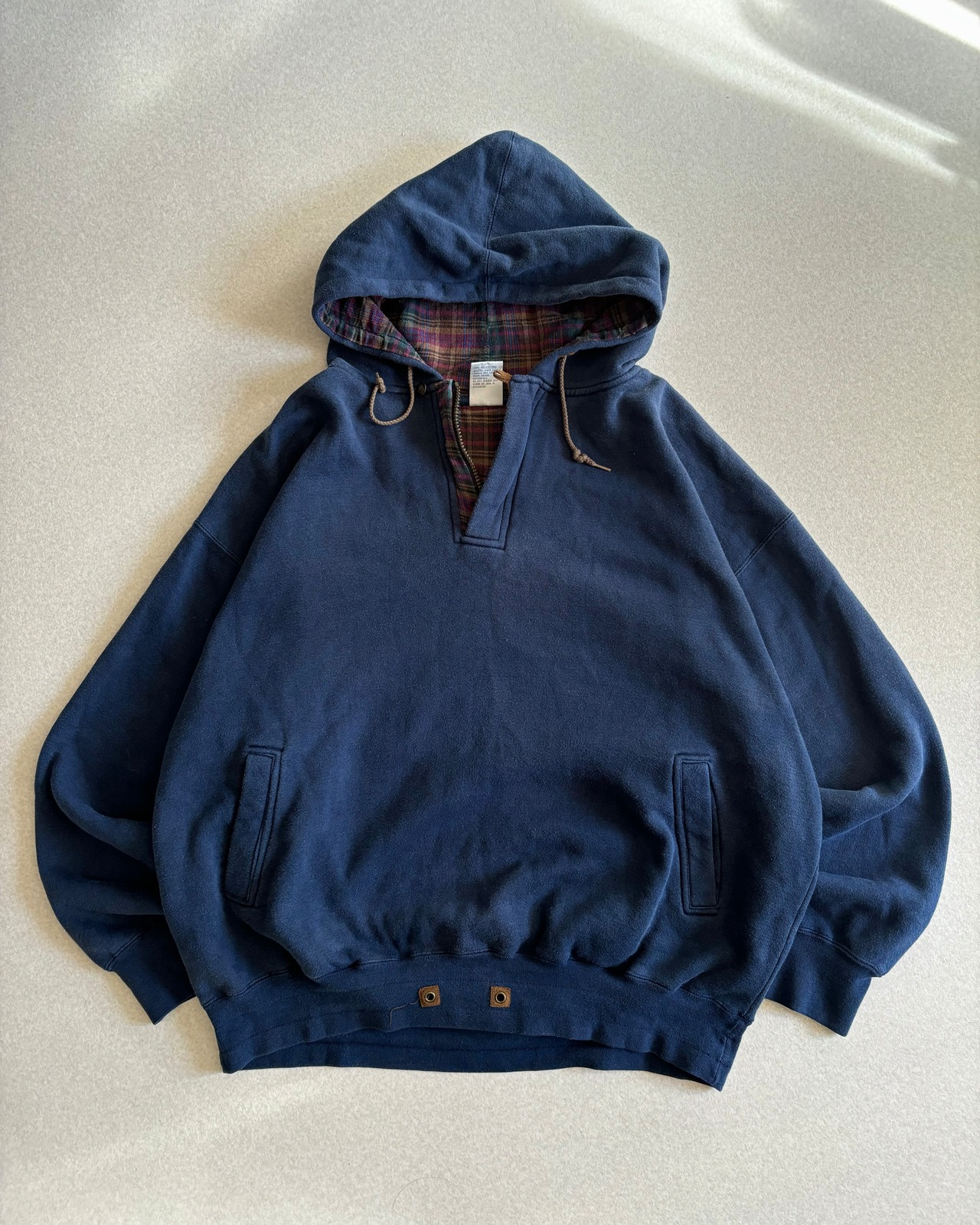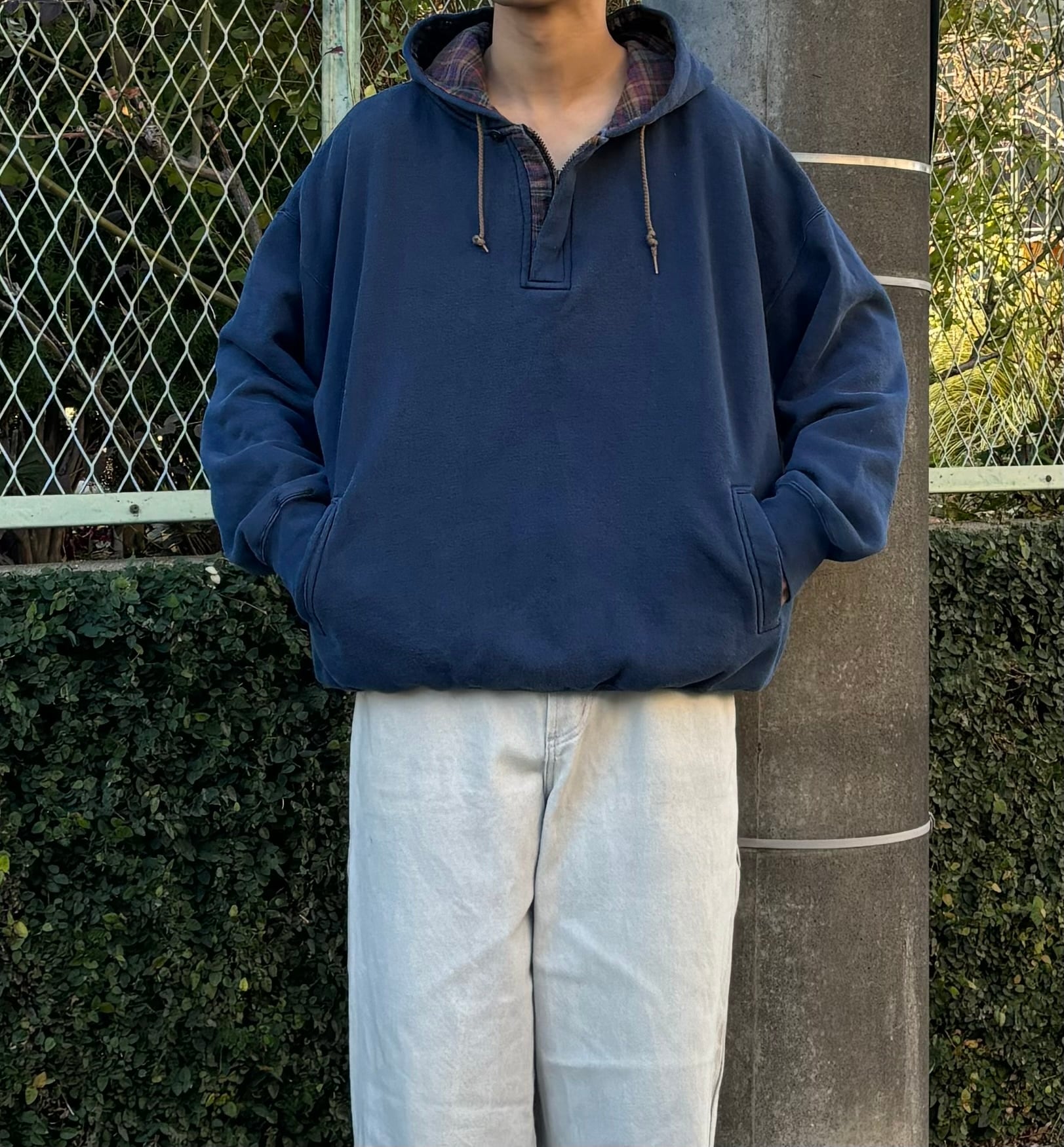 90s BAC check-lined hoodie / フード裏チェック 無地フーディー