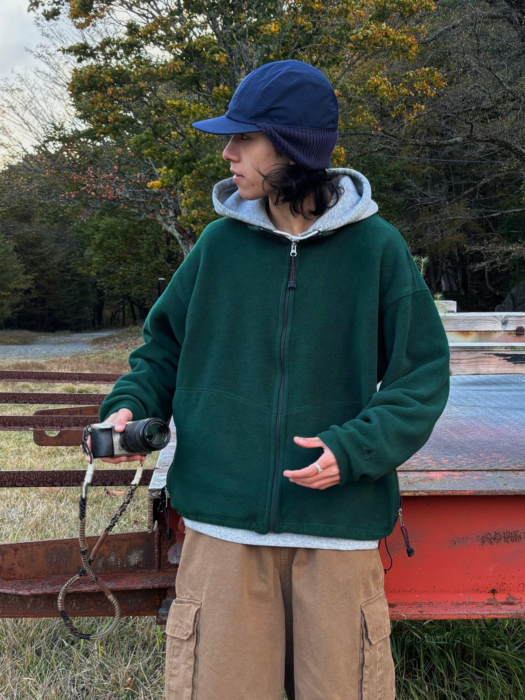 深めのグリーンカラーでオールドアウトドア味を感じる1着。