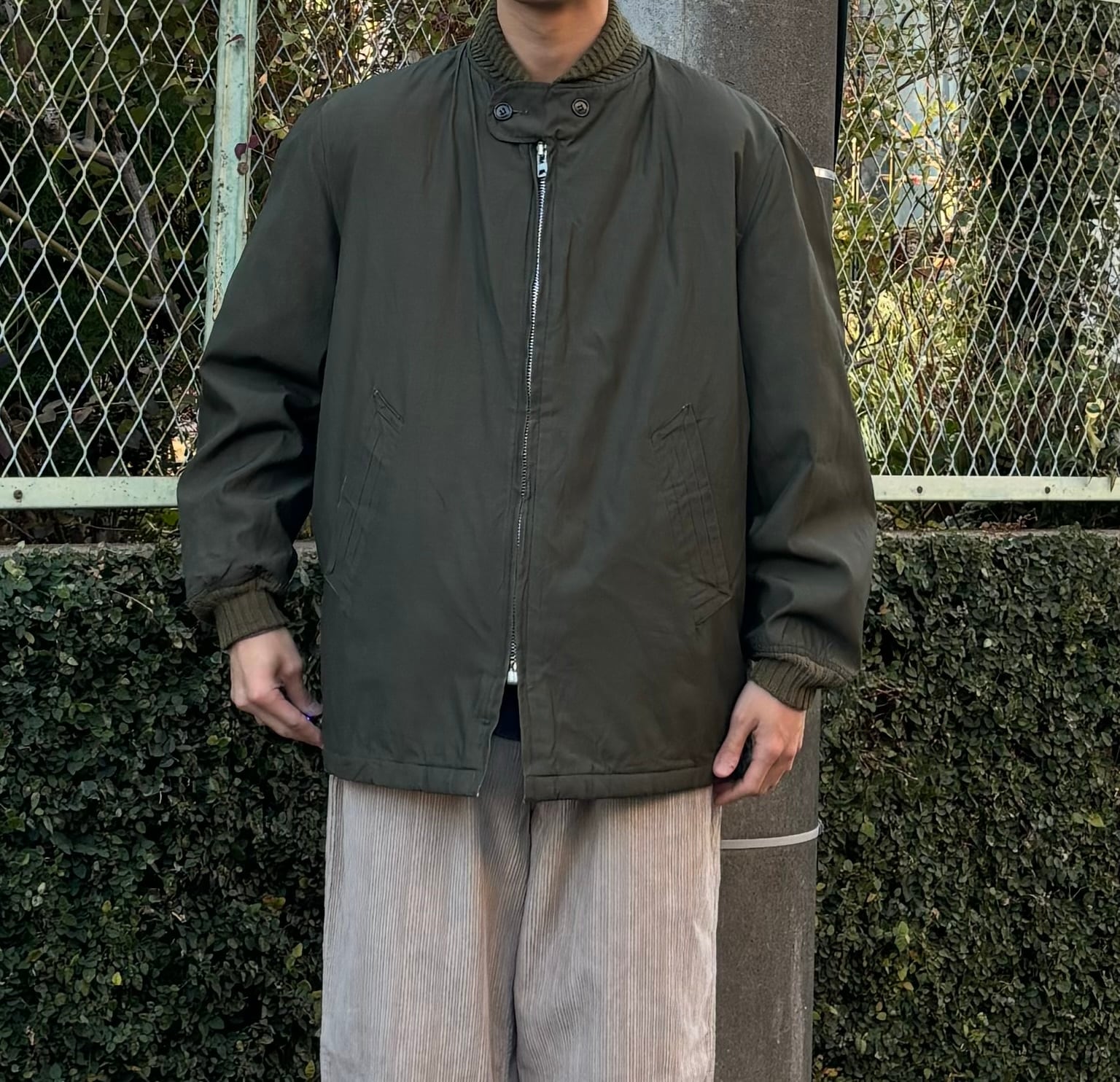 この手のジャケットは細身だったりファッショナブルじゃなかったりする中で、このシルエット感で着れてこの色味、当店が提案したいラフなスタイルにもうまくハマる気がするのでピックしました。
