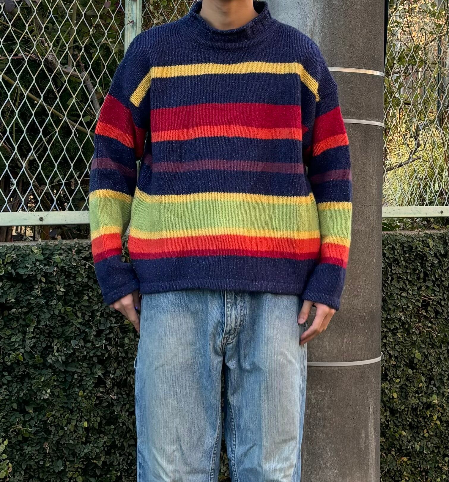 90s アイルランド製 wool×silk roll-neck border knit / ウール×シルク ロールネックボーダーニット
