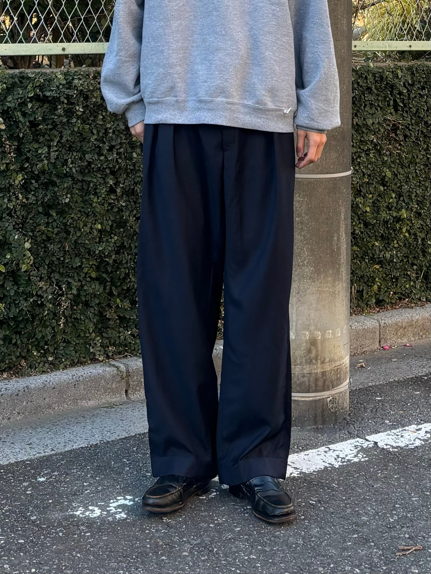 裾までストンと落ちる程よいワイドシルエットで使い勝手もかなりいい。