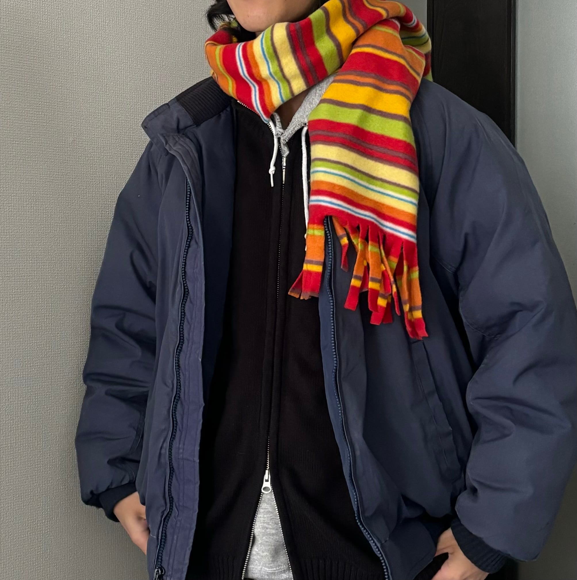 90sのマルチカラーストライプマフラー。