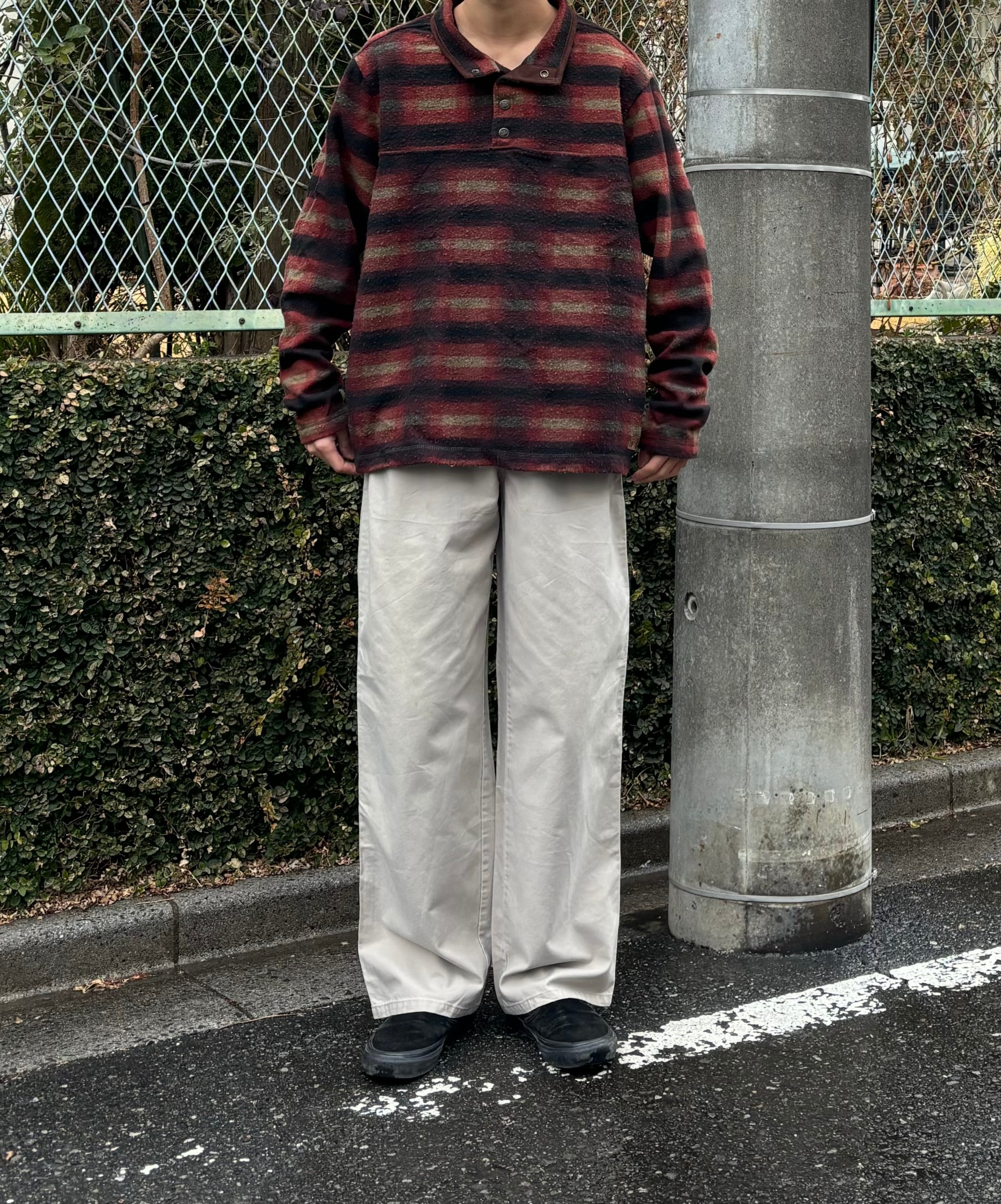 90s fleece snap-t /総柄フリース スナップt