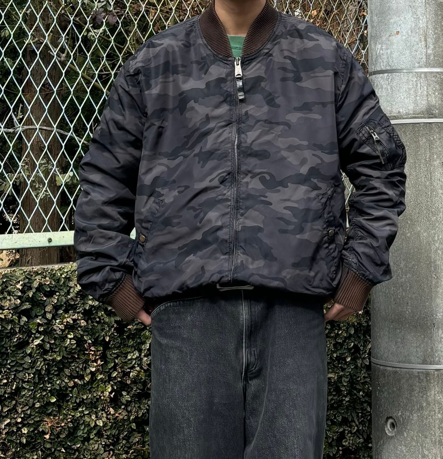 意外とない暗めのトーンのカモ柄ma1。
