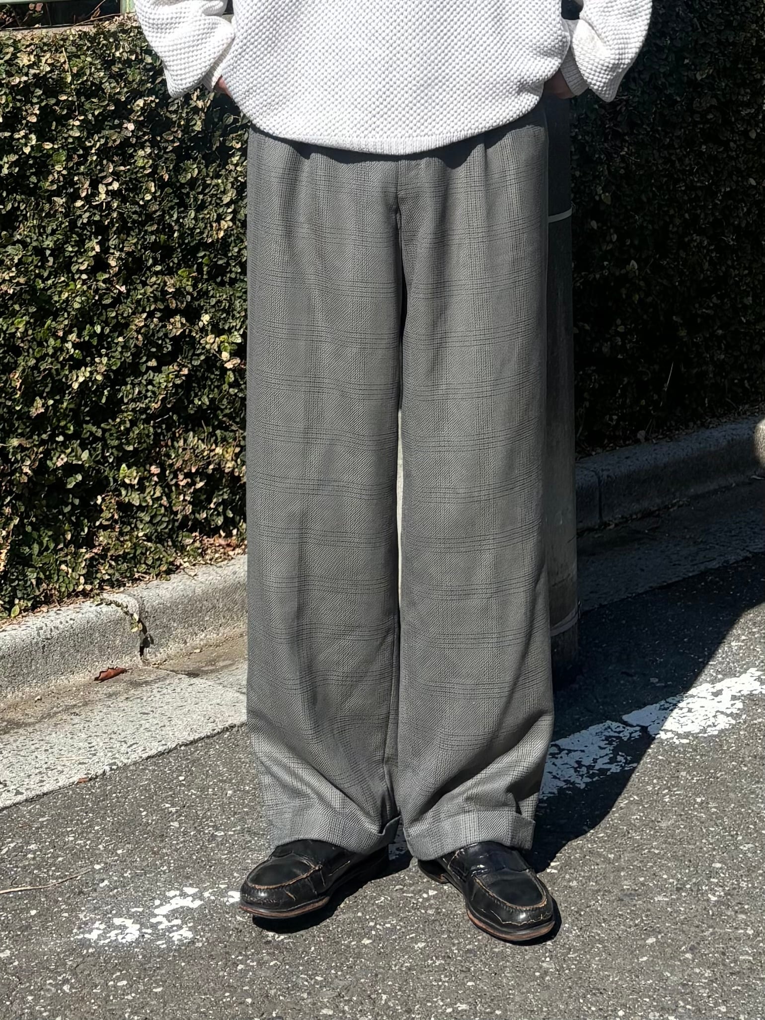 ユーロのワイドチェックスラックス。