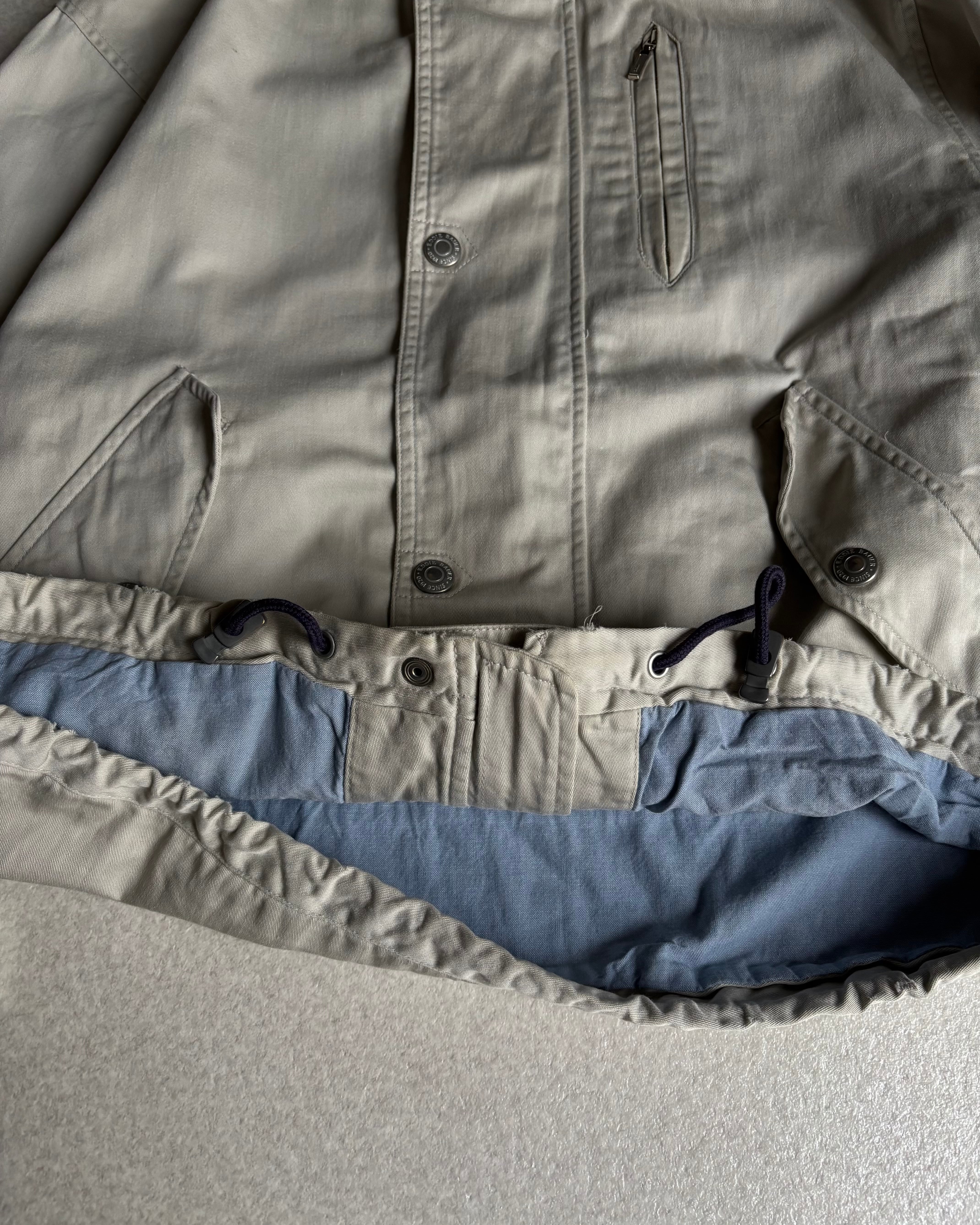 裾は絞りがついていて、フロントはスナップとジップ開け閉め可能。