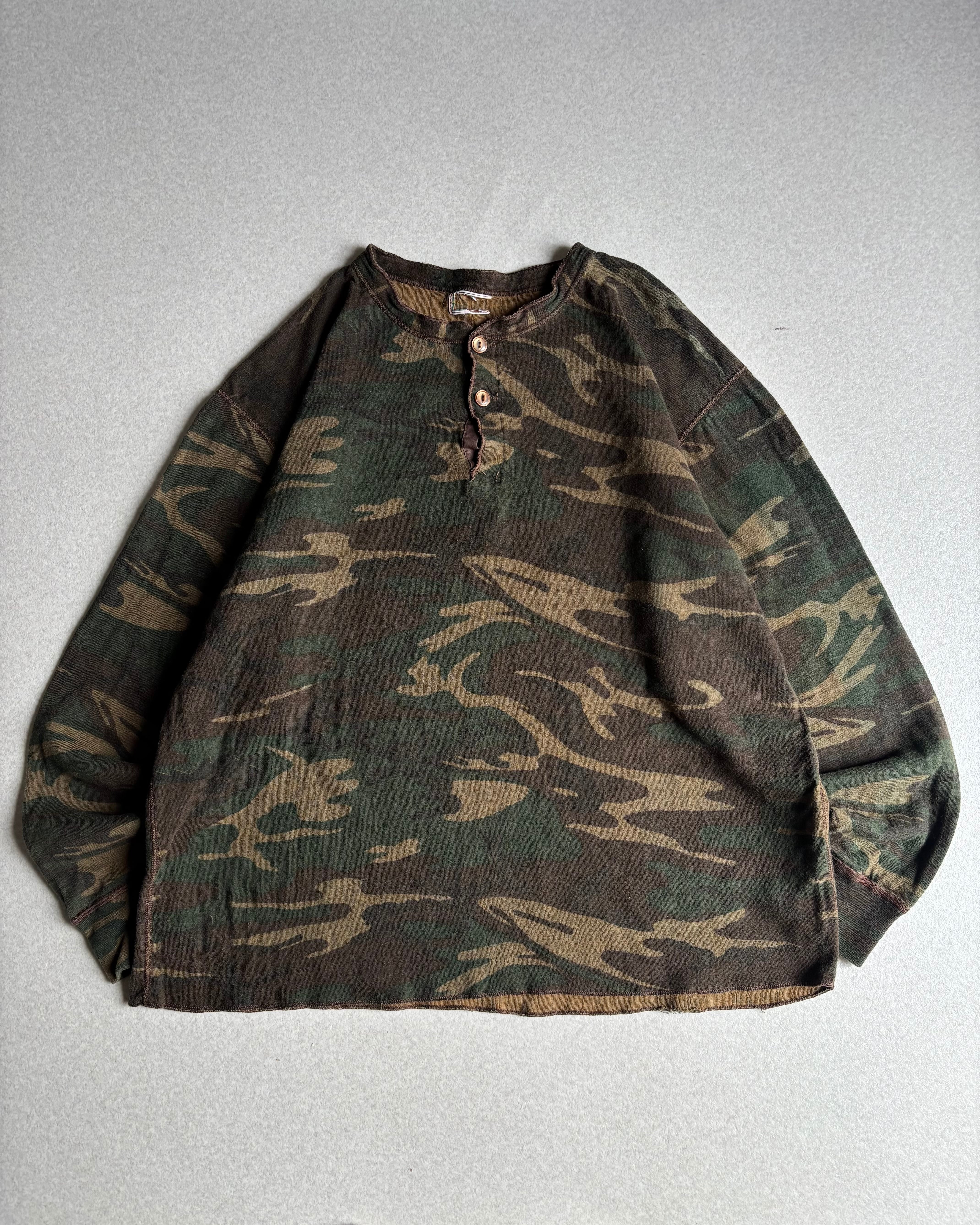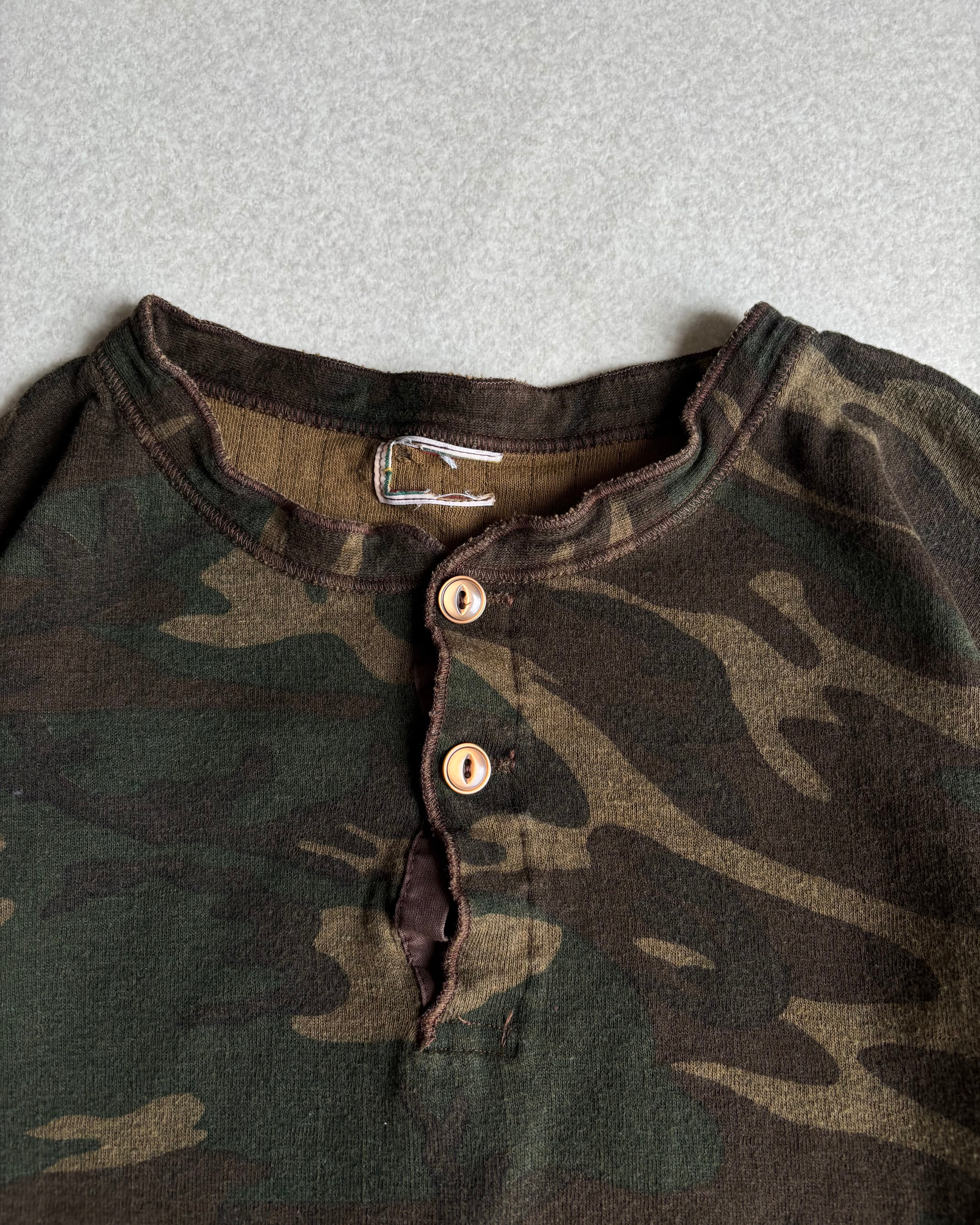 90s Camo Henley long-sleeve T-shirt / カモ柄 ヘンリーネックロンT