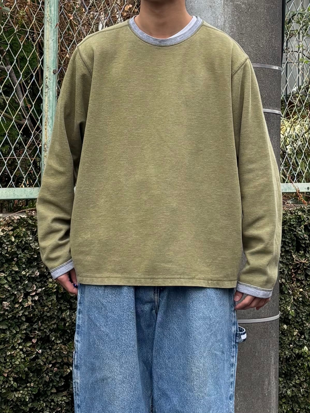 ピスタチオカラーでリブがグレーの切り替え。