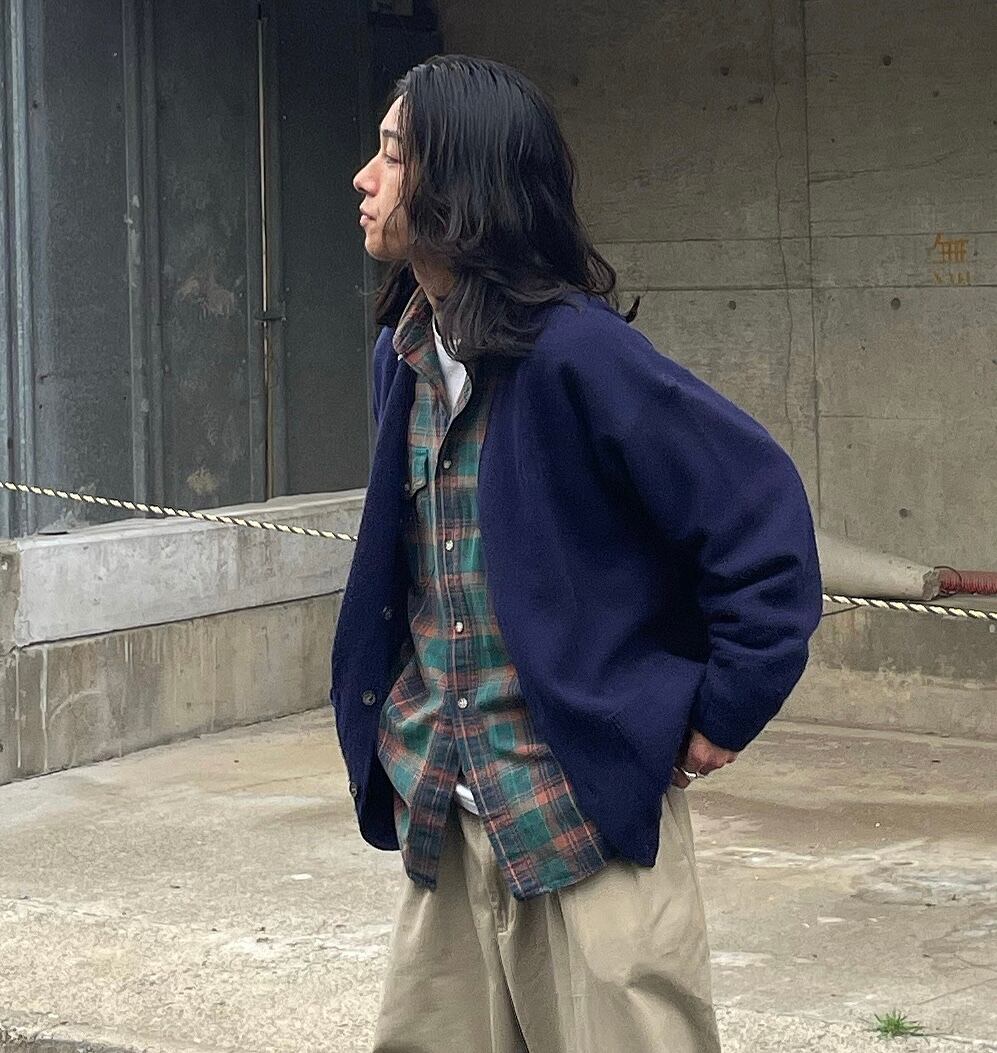 丈は長すぎず身幅は広めで中にパーカーとかも仕込めるいいサイズ。